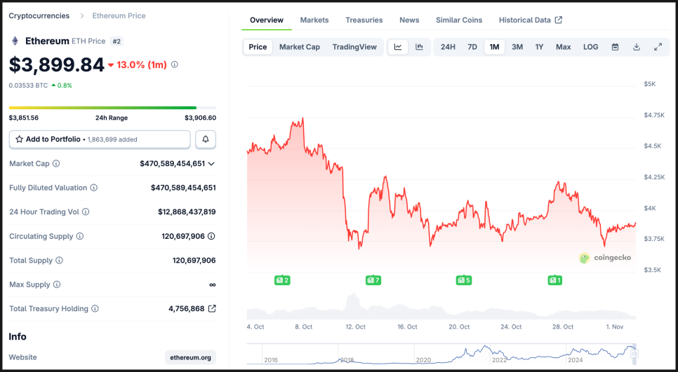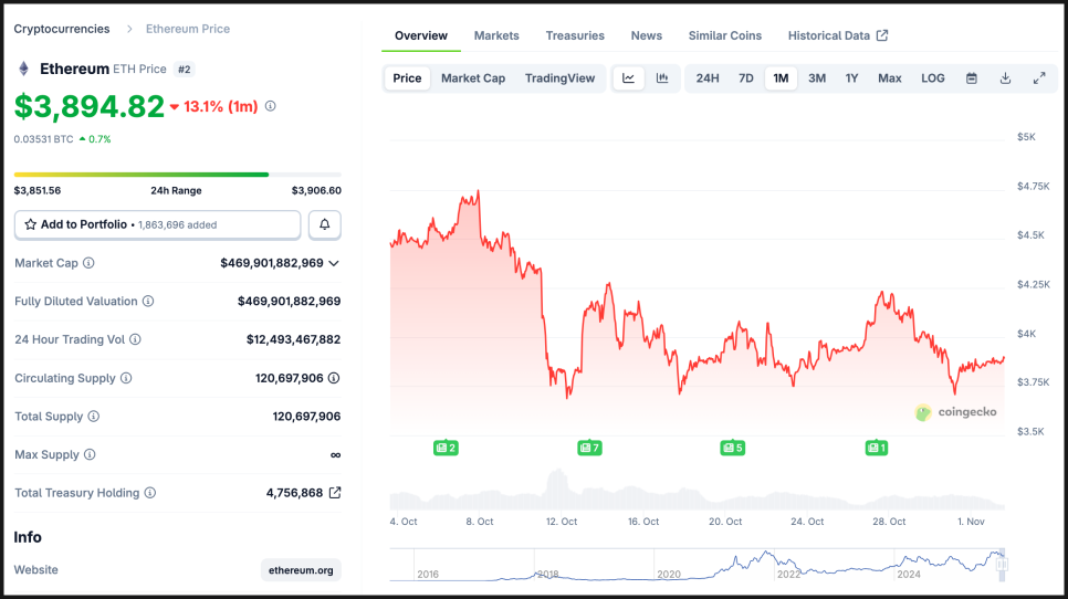 비트코인의 낙폭은 시장 전체의 분위기를 끌어내렸습니다. 이더리움도 비슷한 흐름을 그렸죠. 초반 강세 이후 급락, 그리고 미약하게나마 반등을 시도했습니다만 유의미한 추세 전환을 이끌어내지 못했습니다.