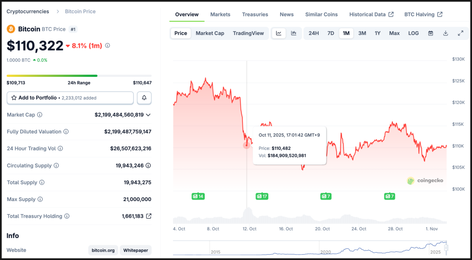 10월 초 비트코인은 12만 달러를 돌파하며 활기찬 출발을 보였습니다. 투자자들 사이에서는 “올해도 업토버가 온다”는 기대감이 퍼졌는데요. 하지만 중순이 되자 분위기는 완전히 바뀌었습니다.
