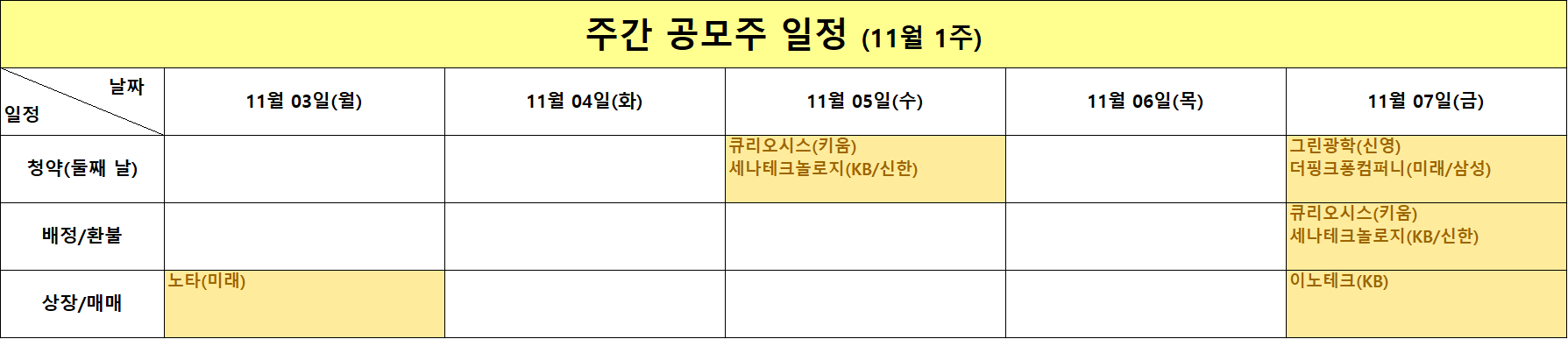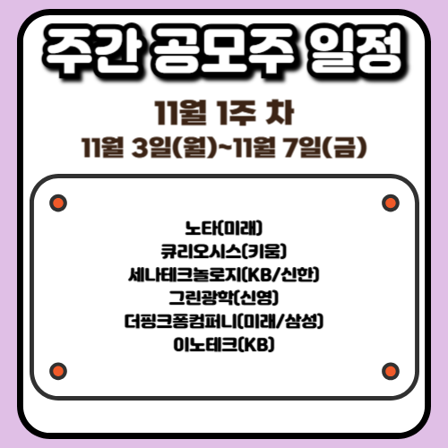 📆 11월 1주 차 공모주 일정 요약