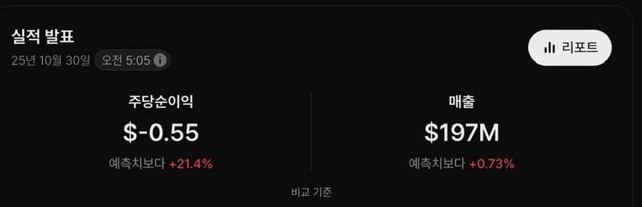 Non-GAAP 주당순손실 -0.55달러(전년 동기 -0.91달러)