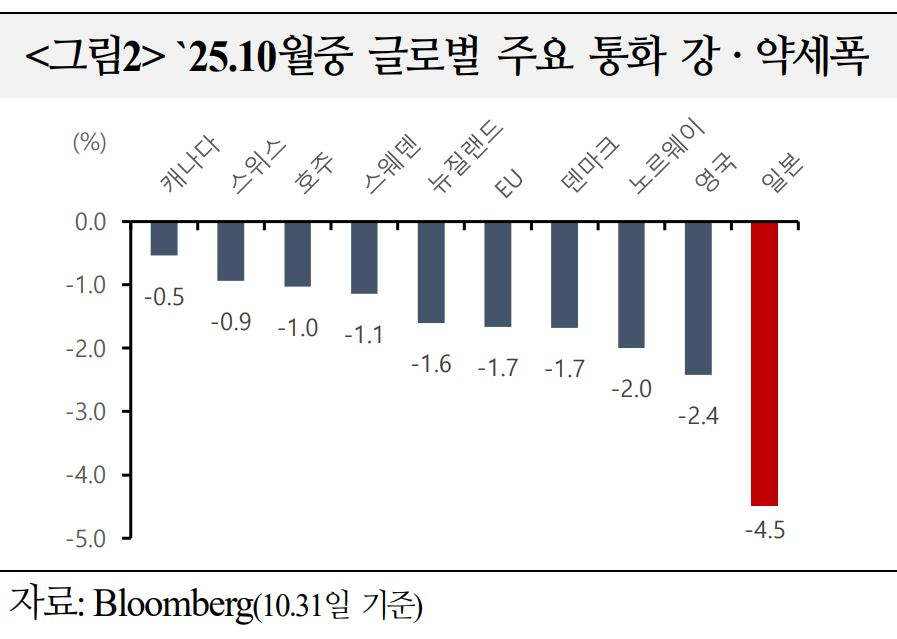 최근 엔화 약세의 주된 배경으로 ▲다카이치 내각 출범에 따른 재정 확대 대한 기대 ▲BOJ의 완화적 통화정책 기조 전망 등이 작용