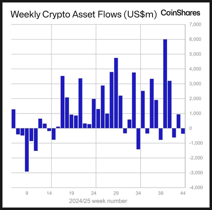 자산운용사 코인셰어스(CoinShares)에 따르면, 지난주 전 세계 암호화폐 투자상품(ETF, ETP 등)에서는 3억 6천만 달러의 순유출이 발생했습니다. 불과 전주에는 9억 달러 이상의 순유입이 있었던 것을 감안하면, 투자심리가 얼마나 급격히 바뀌었는지 보여주는 수치입니다.