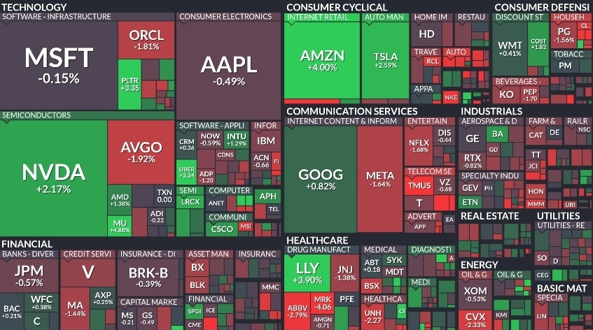 섹터별로는 대형 기술과 일부 반도체가 상대적 강세를 보였고 엔비디아와 아마존 테슬라가 시총 중심의 지수 방어를 이끌었습니다. 반면 브로드컴과 오라클 등에서는 차익 매물이 출회되었고 소비와 산업 전반에서는 혼조가 확인되었습니다. 이러한 내부 회전은 유동성이 성장 테마와 비용 절감 효과가 명확한 종목으로 먼저 흘러가는 전형적인 후반기 장세의 특징과 맞닿아 있습니다.