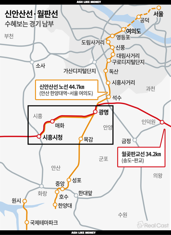 시흥의 장현지구는 서해선이 지나며 신안산선, 월판선까지 지나면서 트리플 역세권으로 변모할 예정이다. 인천과 안산, 안양을 접하고 있어 저렴한 가격으로 초반에 거주하다가 돈이 생긴다면 정석으로 상급지로 이동할 곳으로 평가받는다. 아쉽게도 학군지나 상권이 크게 발달하지는 않아 앞으로 더 개발이 필요하다. 시흥은 크게 배곧지구, 은계뉴타운, 장현지구 3가지로 나뉘고 시흥시층역과 시흥능곡이 향후 더욱 시세가 상승할 곳으로 보인다.