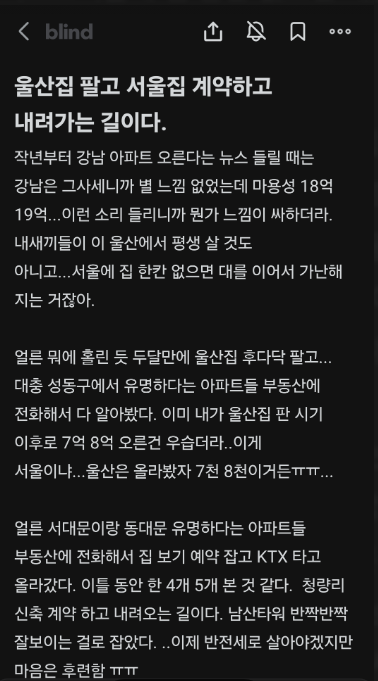 조바심에 두달만에 지방 거주아파트를 팔고
