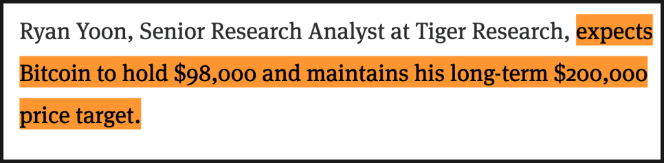 사실 어제도 언급했지만 이번 하락은 단일 요인이라기보다는 여러 요인이 겹친 결과입니다. 타이거리서치(Tiger Research)의 수석 연구원 라이언 윤(Ryan Yoon)은 “이번 급락은 시장 심리가 빠르게 냉각된 결과지만, 장기 추세가 끝났다는 의미는 아니다”라고 분석했습니다. 그는 비트코인이 9만 8천 달러 선을 지지선으로 유지할 경우, 장기적으로 20만 달러까지 상승할 가능성을 여전히 보고 있습니다.