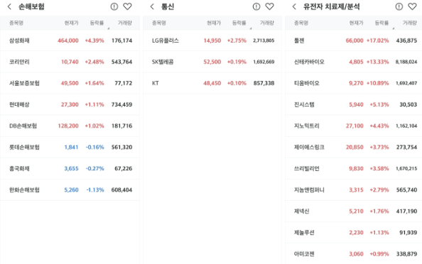 보험, 통신, 바이오