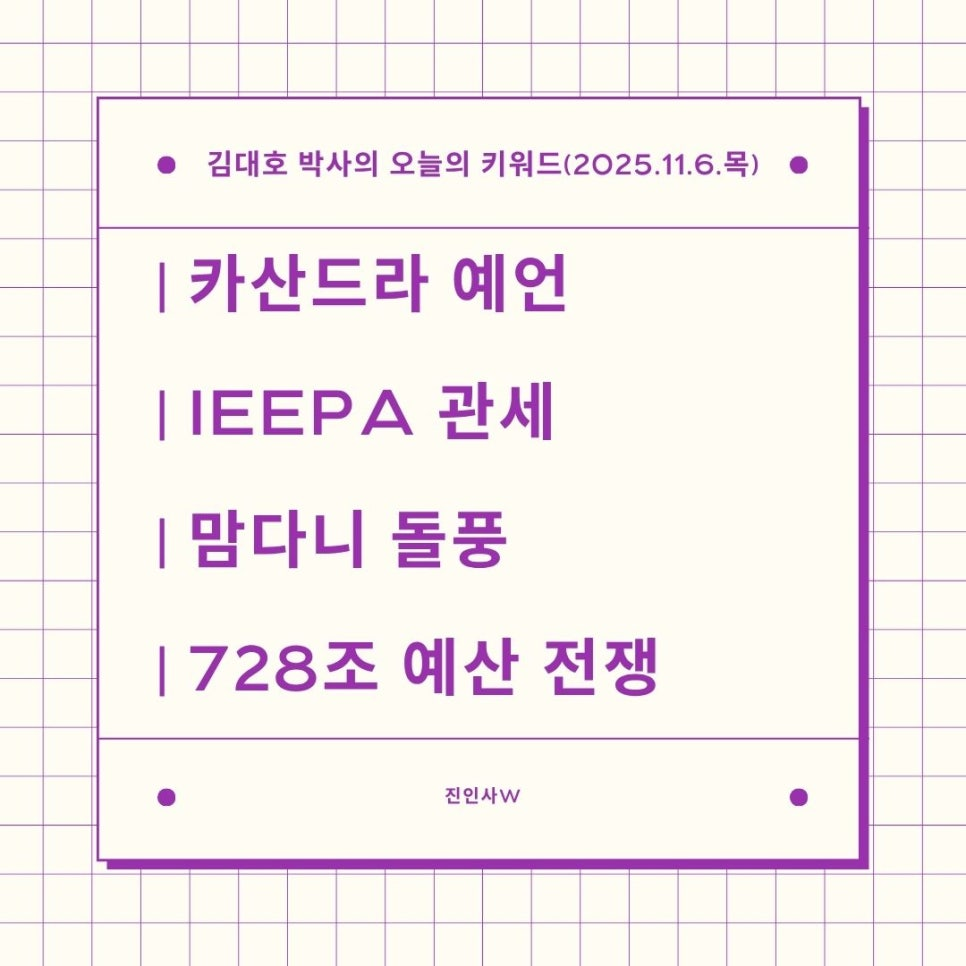#김대호박사의오늘의키워드 #sbsbiz채널 #경제흐름읽기 #시간은소중히쓰자 #주식투자 #부동산투자 #진인사대천명 #카산드라예언 #IEEPA관세 #맘다니돌풍 #728조예산전쟁