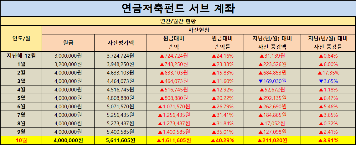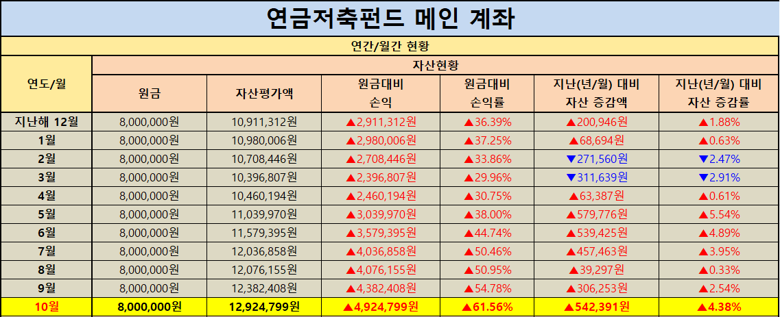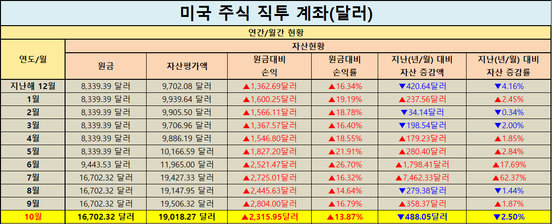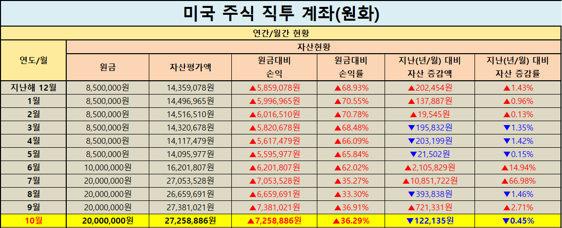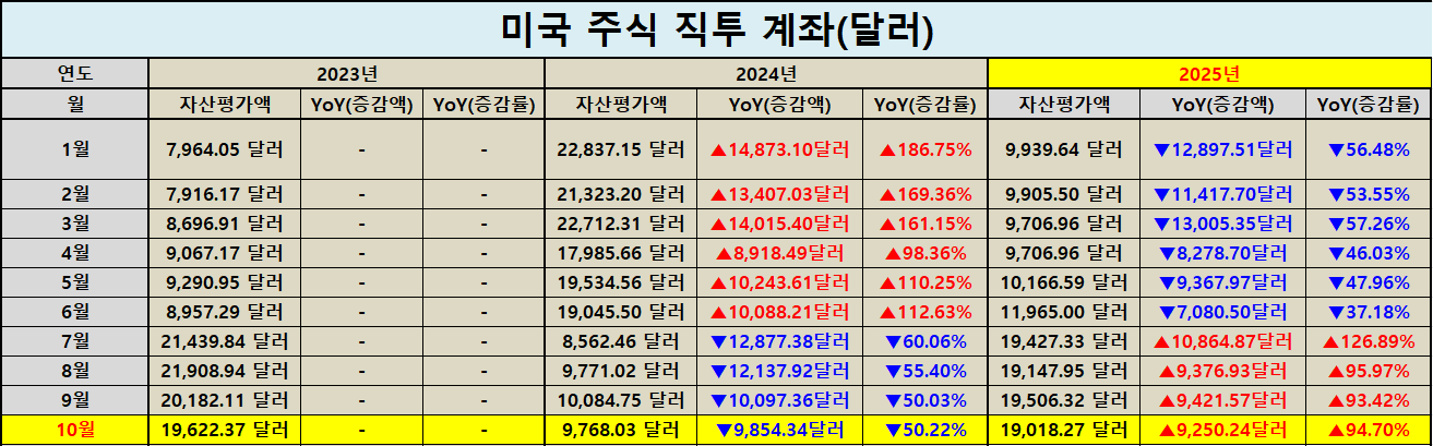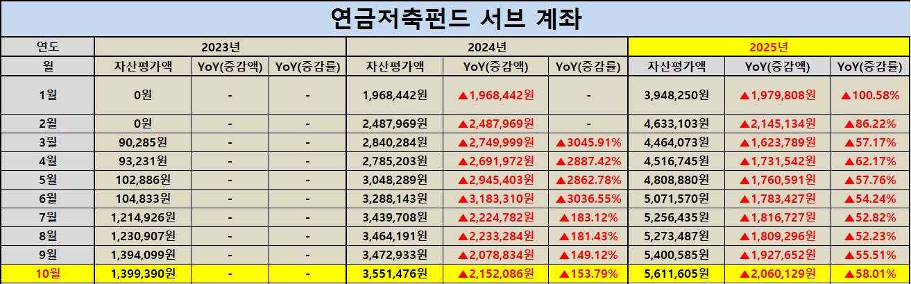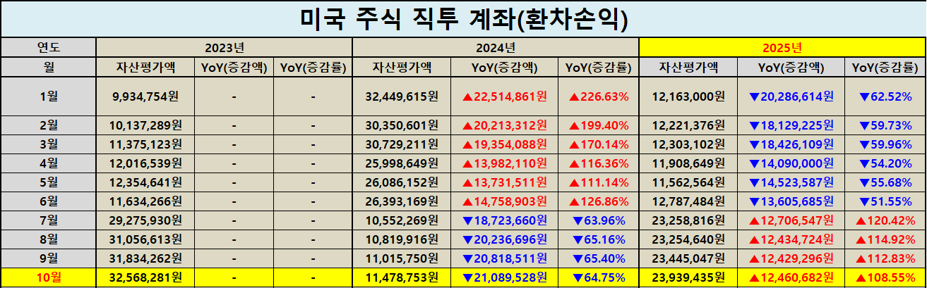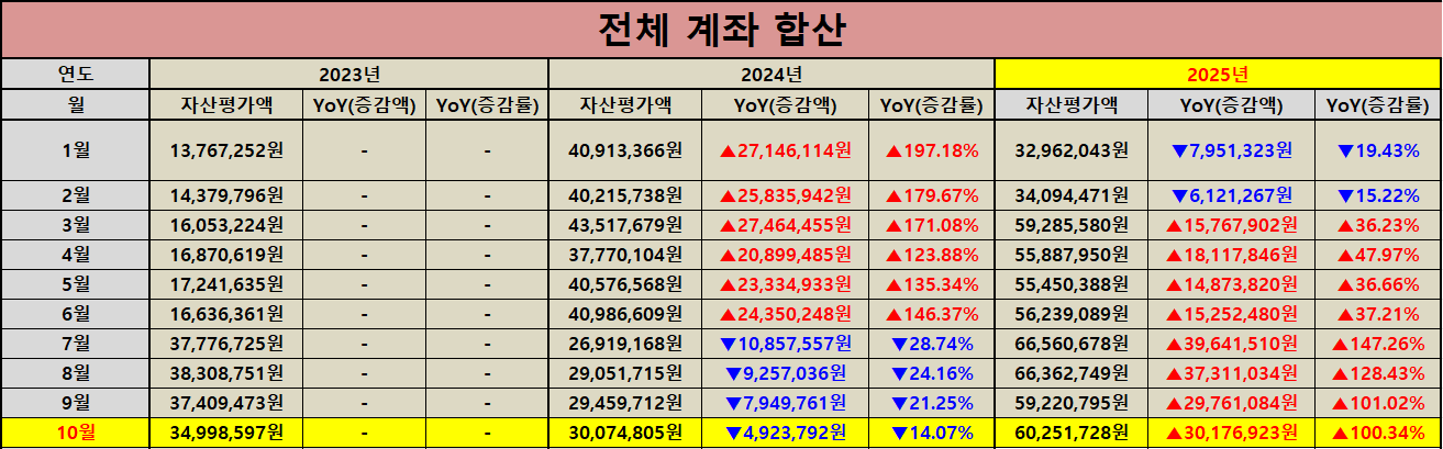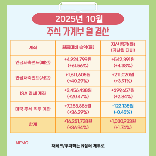이런 흐름을 보면 ‘조급하지 않게 쌓아가는 투자’의 중요성을 다시 한 번 느낍니다. 수익보다 구조, 단기보다 방향, 숫자보다 꾸준함이 결국 장기 자산의 핵심이라는 사실을 다시금 확인한 10월이었습니다.