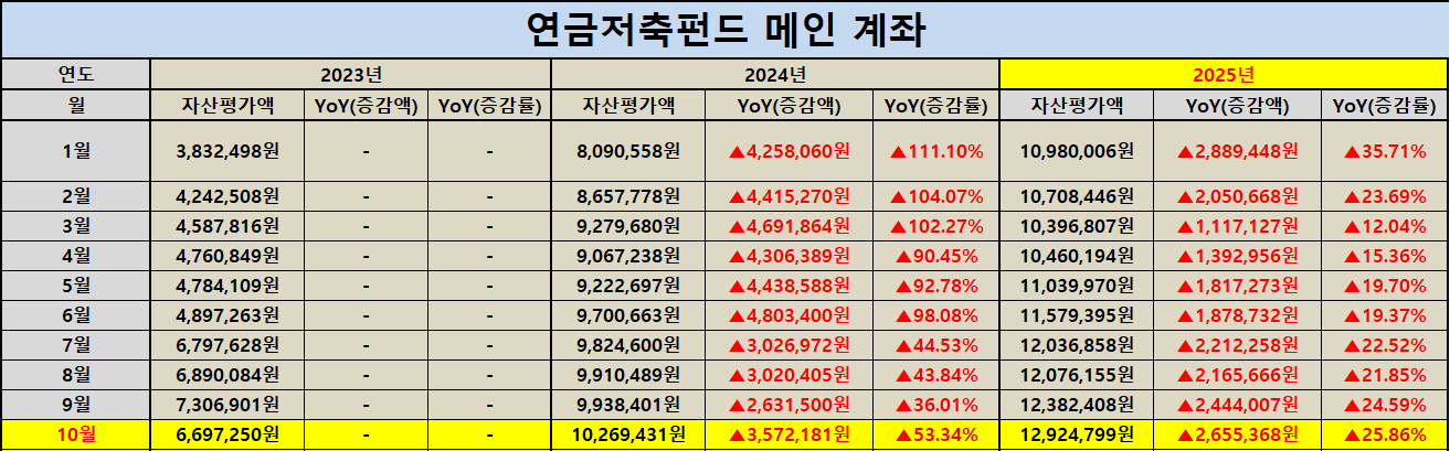 연금저축 계좌는 이번 달에도 흔들림 없는 흐름을 이어갔습니다. 특별한 매수 타이밍을 노리기보다 계획된 적립식 매수와 배당 재투자를 중심으로 운영했는데요, 이렇게 차분하게 쌓아가는 과정이 결국 장기 복리의 기초가 되어주고 있습니다.