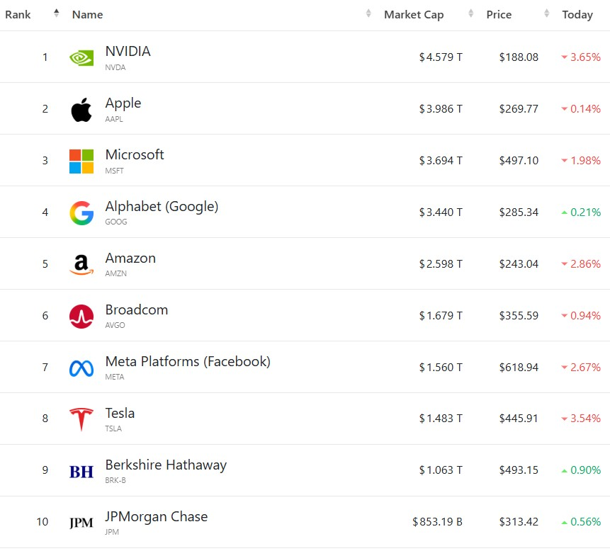 대형 빅테크 기술 매그니피센트7 종목은 알파벳을 제외한 모든 종목이 하락하였습니다. 엔비디아는 전일 대비 -3.81% 큰 폭으로 하였고, 애플 -0.18%, 마이크로소프트 -2.04%, 아마존 -2.86%, 메타 -2.67%, 테슬라 -3.50% 떨어졌습니다. 반면 알파벳은 +0.15% 소폭 상승하면서 거래를 마쳤습니다.