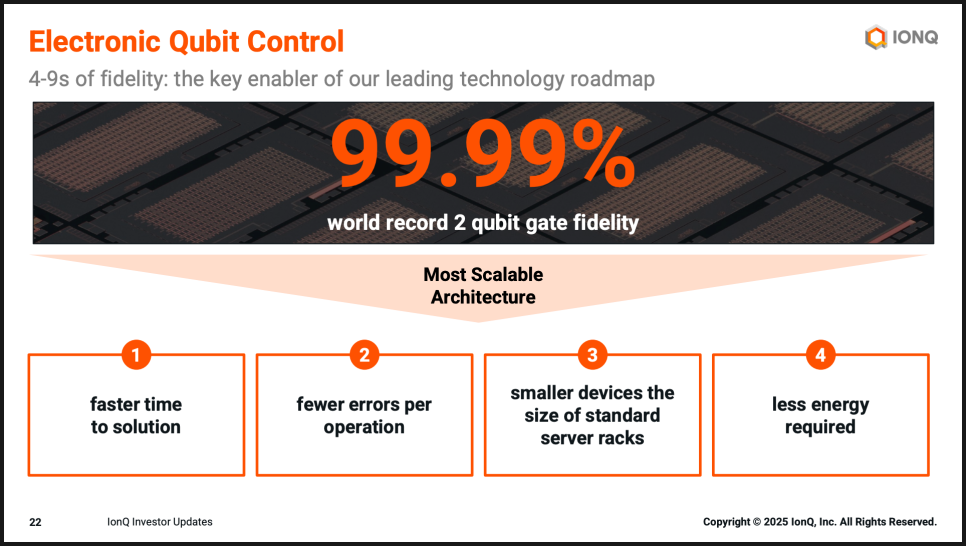 아이온큐는 2025년 3분기에 세계 최고 수준의 2 큐비트 게이트 정밀도 99.99%를 달성했습니다.