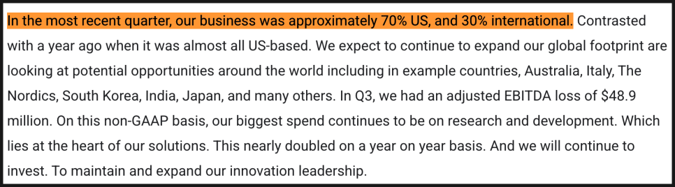 또 하나 주목할 점은 사업 구조의 다변화입니다. 전체 매출의 약 70%가 미국, 30%가 해외에서 발생했는데요. 1년 전에는 거의 전부가 미국 내에서 발생했던 것과 비교하면, 글로벌 시장 확장이 본격화되고 있음을 보여줍니다.
