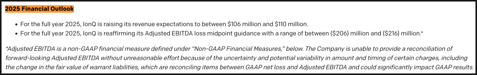 한편 아이온큐는 2025년 연간 매출 가이던스를 1억 600만~1억 1,000만 달러로 상향 조정했습니다. 반면 조정 EBITDA 손실은 중간값 기준 약 2억 1,000만 달러 수준으로 예상하고 있습니다.
