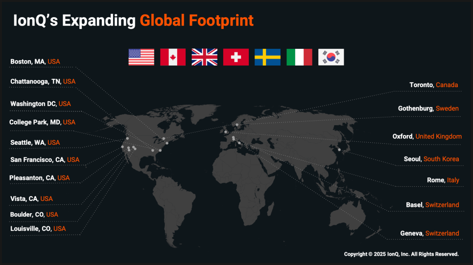 한국 한국과학기술정보연구원(KISTI)은 아이온큐를 국가 양자컴퓨팅 센터의 주요 파트너로 선정했으며, 호주 이머전스 퀀텀(Emergence Quantum)과의 협업을 통해 아시아·태평양(APAC) 지역 진출도 가속화했습니다.