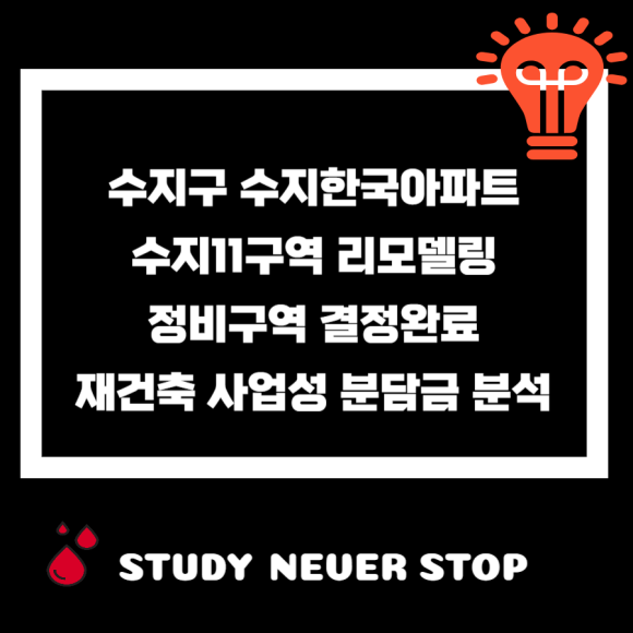 오늘은 수지한국 아파트 수지11구역 정비구역 예정 사업성 분담금 분석입니다.