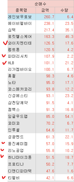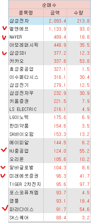 매도 : 유한양행 삼일제약 대원전선 더존비즈온 기업은행 팬오션 케이엠더블유 카카오 LG화학 LS마린솔루션 대주전자재료 에코프로 펩트론 아모레퍼시픽 나노신소재 Kodex레버리지 BNK금융지주 iM금융지주 해성디에스 RFHIC Tiegr차이나전기차 ACEKRX금현물 Tiger미국SP타겟데일리커버드콜