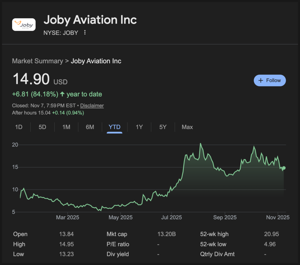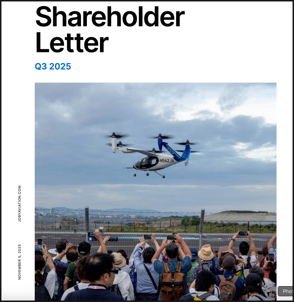 전기 수직이착륙기(eVTOL) 시장의 선두주자인 조비 에비에이션(Joby Aviation) 이 2025년 3분기 실적을 발표했습니다. ‘도심항공 시대가 실제로 가까워지고 있다’는 느낌이 드는 발표였는데요.