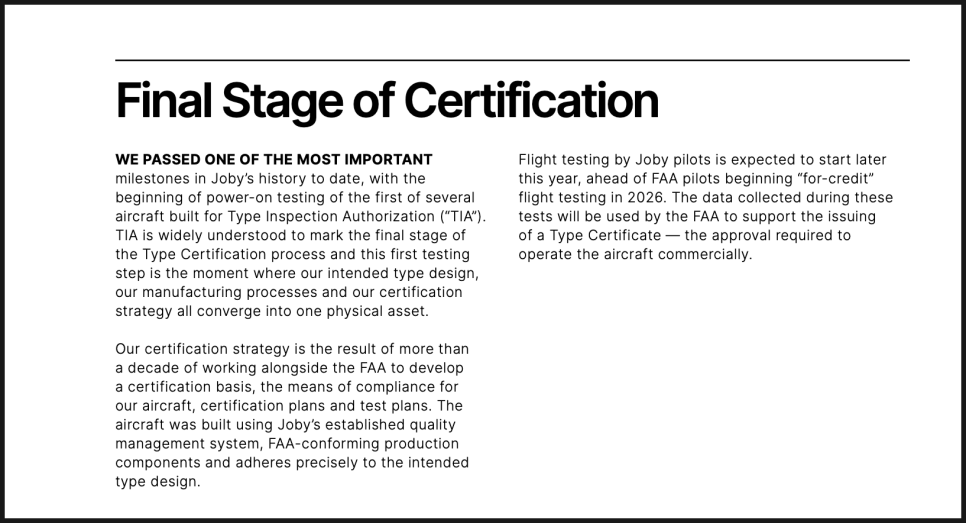 이번에 조비가 발표한 가장 중요한 소식 중 하나는 FAA 인증 절차 관련 업데이트였습니다.