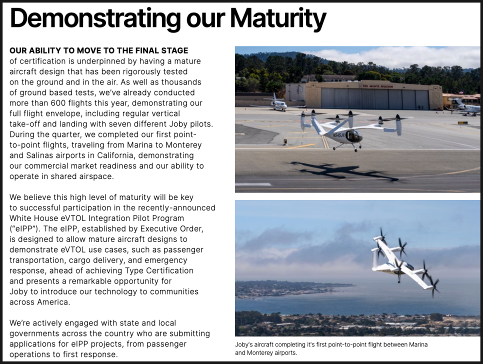 조비는 아직 eVTOL 항공기가 상업 인증을 받지 않았지만, 이미 실제 운항 데이터를 쌓기 위한 시범 프로그램을 시작하고 있는데요.