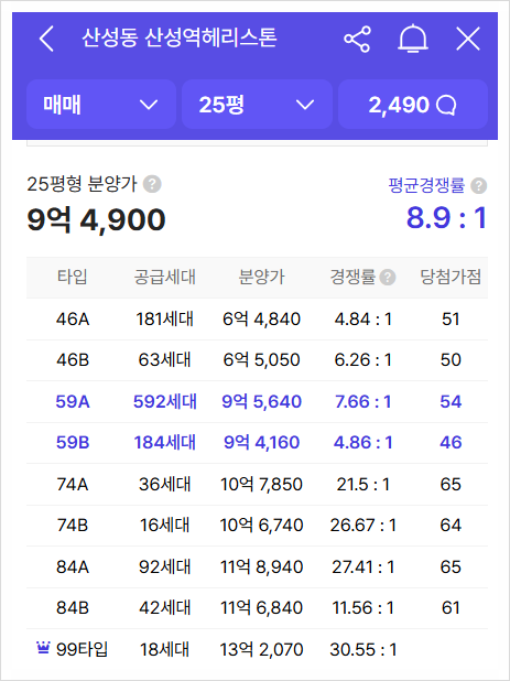 공시지가를 보면 평당 1,237만원이고 감정평가액은 공시지가에 보정률을 곱한 값이다. 1.2~1.6배 수준이므로 1.4배하면 1,731만원이다. 같은 평수이고 같은 대지지분이므로 조합원 총 종전자산평가액은 5,131억이다.