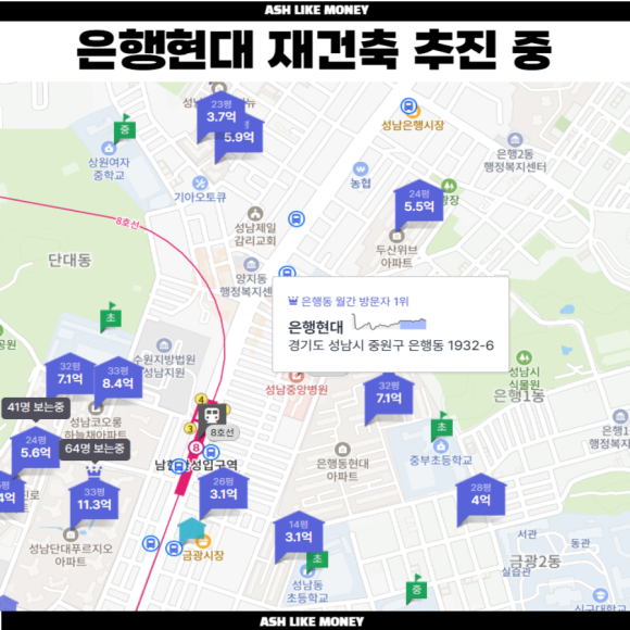 구성남은 기회의 땅으로 미래가 찬란한 입지를 가진 곳이다. 아직은 개발이 덜 되어 어수선한 느낌에다 사람들도 손바뀜이 지속되는 중이다. 하지만 송파구 바로 밑에, 분당구 바로 위에 있는 최고의 입지 중 하나이다. 지하철 노선이 8호선이나 수인분당선 밖에 없는 것은 아쉽지만, 이는 구성남이 새롭게 탄생한다면 주민들 요청에 의해 지하철 노선은 더욱 연장될 것은 자명한 일이다. 은행현대 아파트는 은행주공아파트와 헷갈릴 수 있지만, 아직 안전진단 통과 밖에 없는 초창기 사업구역이다. 은행주공은 이미 조합원 분양신청까지 마친 곳이고 투기과열지구라 예외사항을 제외하곤 조합원 지위양도가 금지된다.