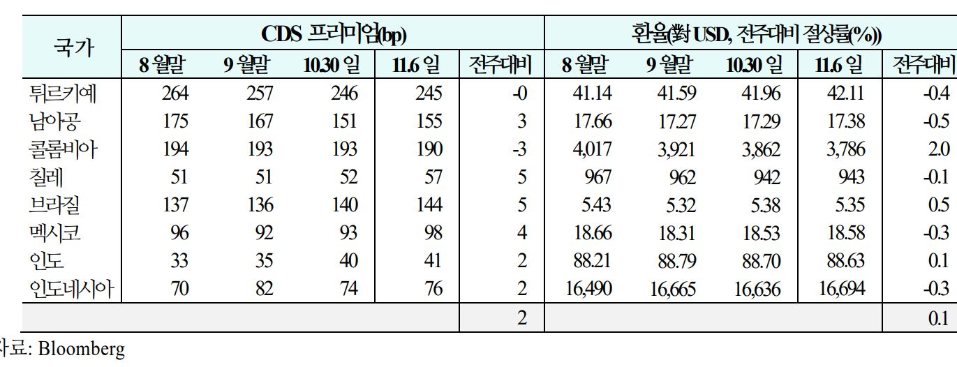 03. 주간 신흥국 CDS 및 환율 동향('25.10.31 (금) ~ 11.06 (목))
