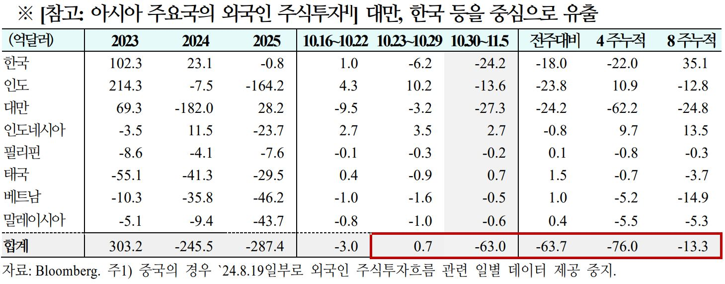 주간 글로벌 자금 흐름(25년 10월 30일(목) ~ 11월 05일(수))