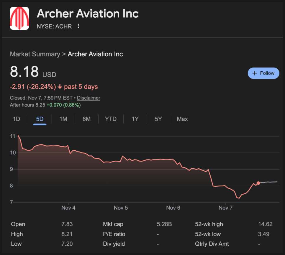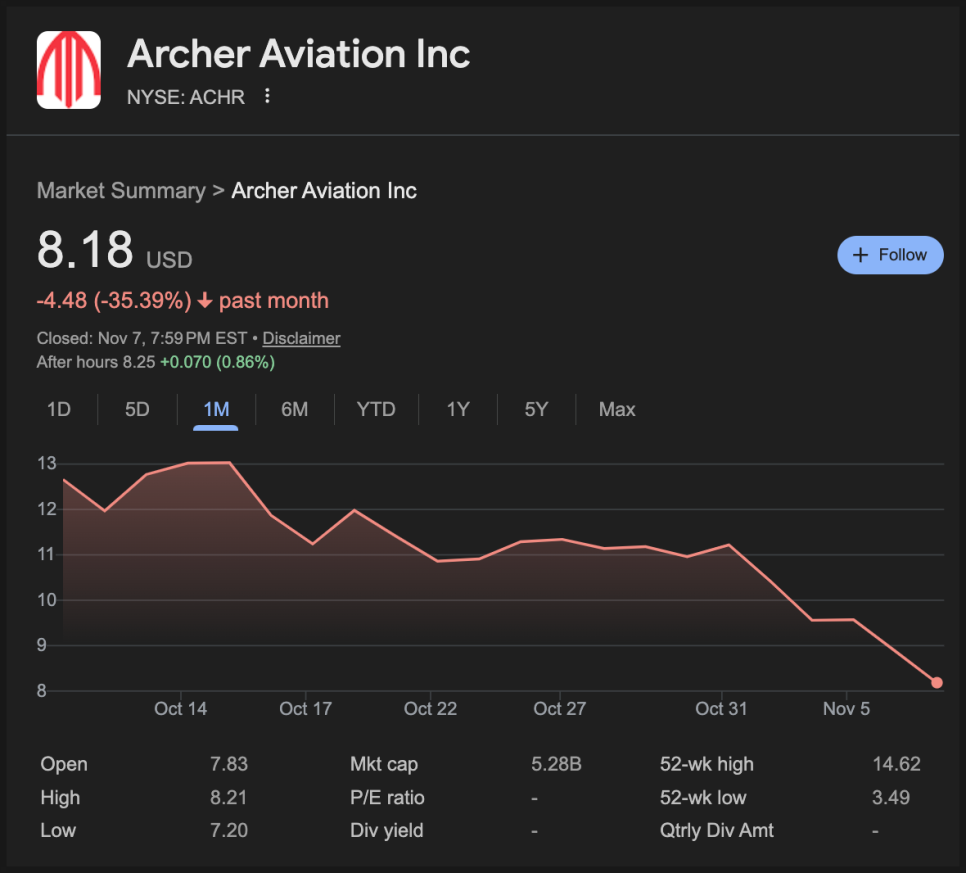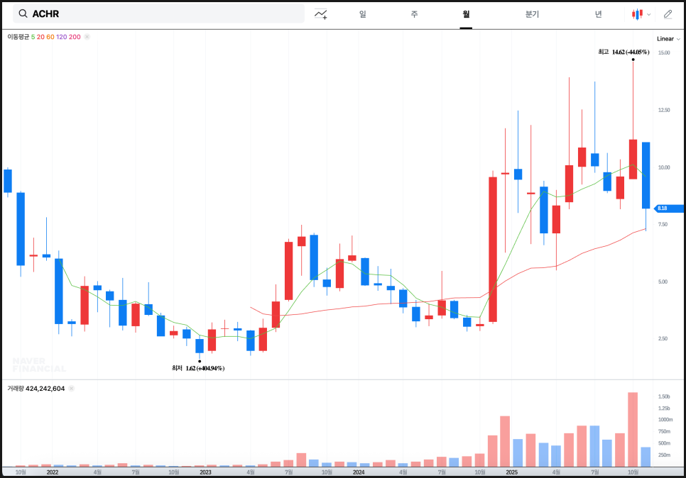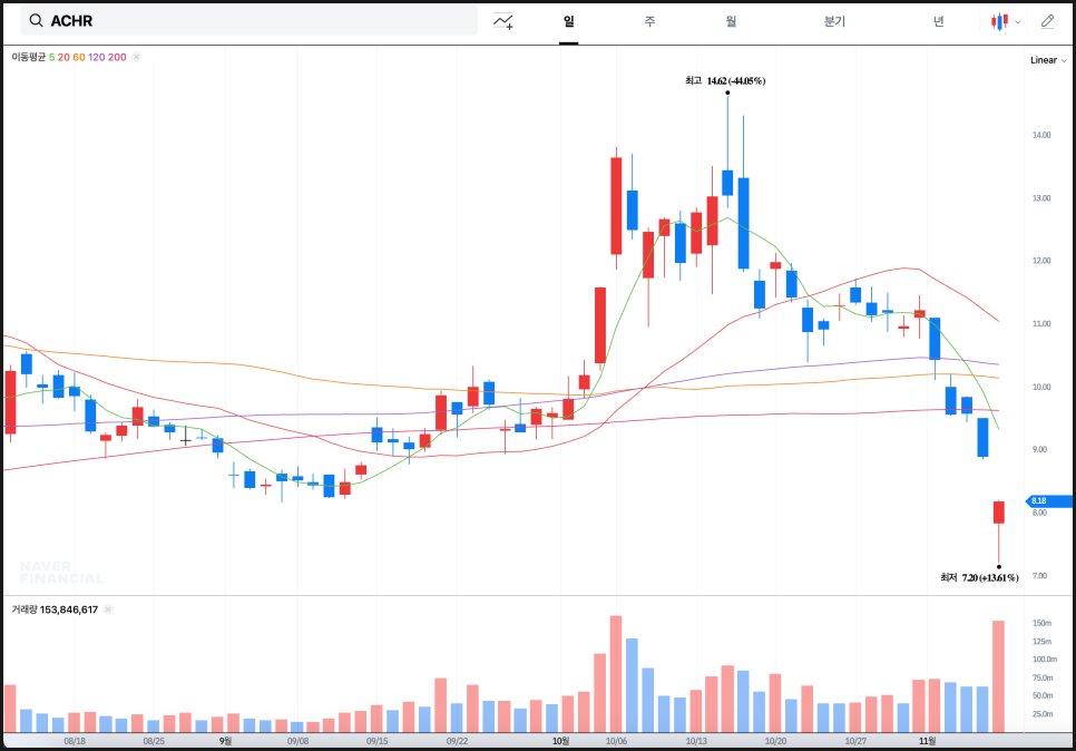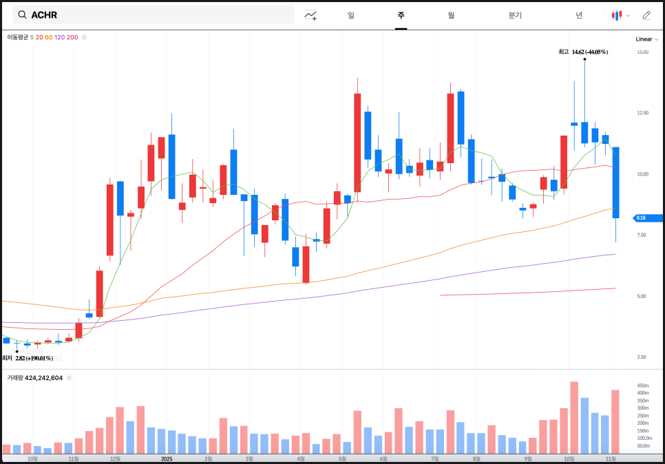 2025년 11월 9일에 다룰 종목은 아처 에비에이션(ACHR)입니다.