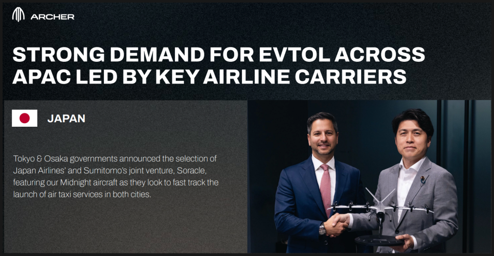 아시아 지역 파트너십도 빠르게 확대 중입니다. 일본에서는 일본항공(Japan Airlines) 이 주도하는 컨소시엄에 참여해 도쿄 시 정부의 ‘도심형 항공 모빌리티 시범사업’ 1단계 프로젝트에 선정됐습니다. 아처의 기술이 아시아 시장에서 공식적으로 인정받았다는 의미로 해석됩니다.