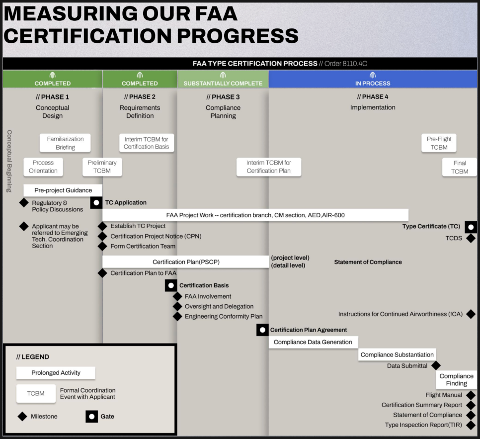 아처는 아직 매출이 전혀 없습니다. 즉, 투자자 입장에서는 ‘언제 돈을 벌기 시작할 수 있느냐’가 핵심이죠. 이를 위해서는 미국 연방항공청(FAA)의 항공기 인증(Certification) 절차를 통과해야 합니다. 이 과정은 안전성 검증이 수반되기 때문에 예상보다 시간이 더 걸릴 수 있습니다.