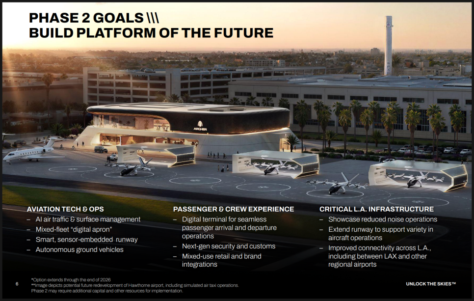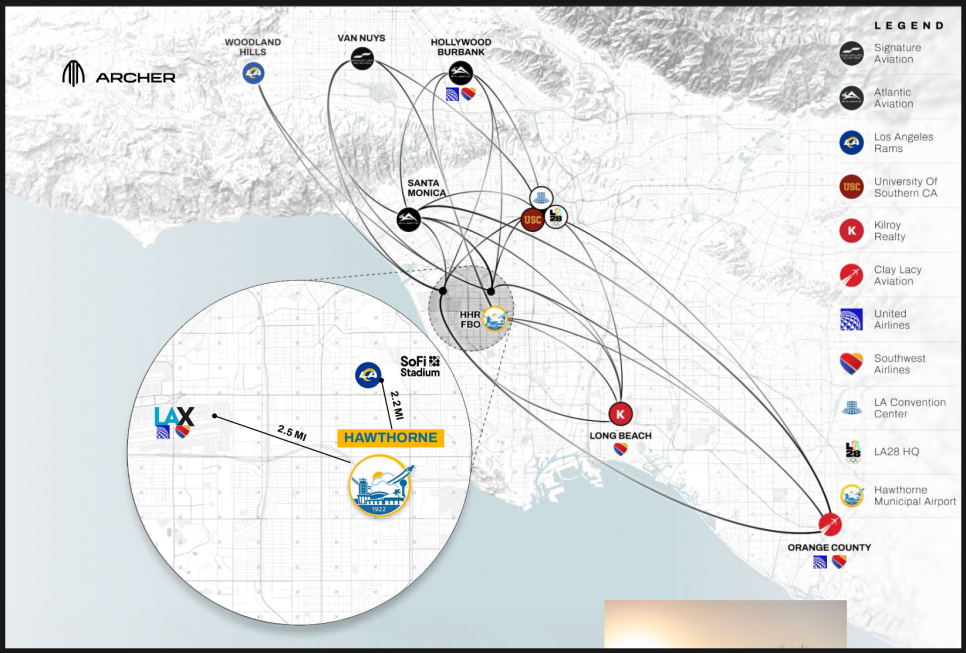 올해 아처가 보여준 가장 과감한 결정 중 하나는 바로 로스앤젤레스 호손 공항(Hawthorne Airport) 인수입니다. 인수 금액은 약 1억 2,600만 달러로 알려졌는데요. 단순한 부동산 거래가 아니라, 회사의 전략적 거점을 확보한 셈입니다.