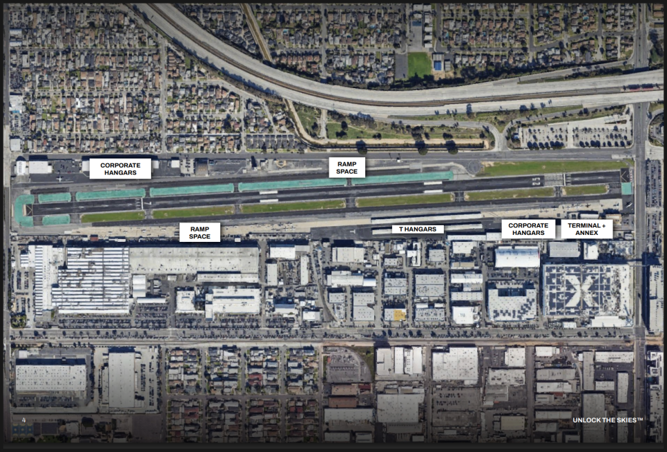 로스앤젤레스 중심부의 80에이커(약 32만㎡) 부지를 가진 공항인데, LA 국제공항(LAX)에서 불과 3마일 거리이며, 소파이 스타디움(SoFi Stadium), 인튜잇 돔(Intuit Dome), 다운타운 LA 등 대형 인프라와 인접해 있습니다.