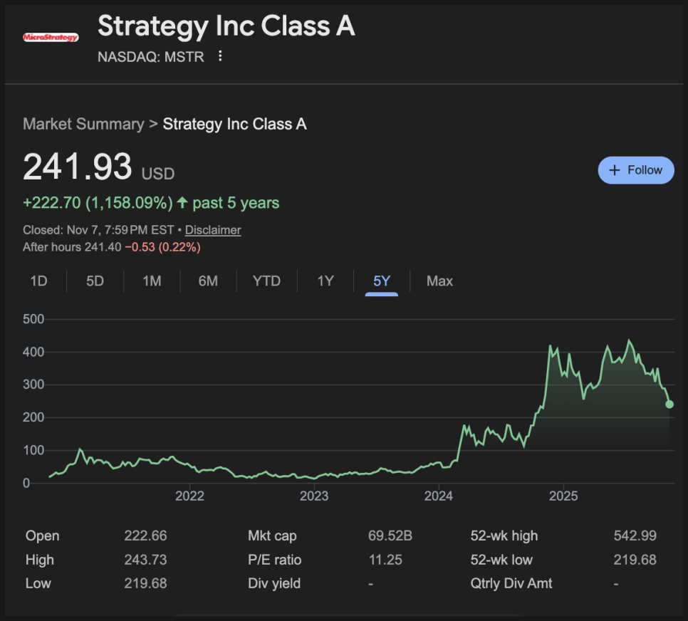 참고로 스트래티지 주식 MSTR 주가는 비트코인 보유 전략 덕분에 10배 이상 올랐으나, 올해 주가 수익률은 썩 좋지 않은 상태입니다.