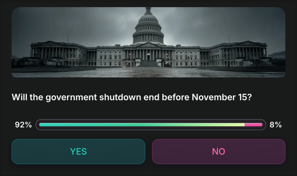 현재 예측시장에 따르면, 정부 셧다운이 11월 15일 전까지 끝날 거라는 의견이 92%로 우세한 상황인데요. 따라서 이번 암호화폐 반등은 진정한 회복이라기보다 일시적 안도감의 반영으로 볼 수 있습니다. 정부 재개방, 유동성 회복, 재정 부양 기대감이라는 세 가지 요인이 겹치며 시장이 반등했지만, 아직 구조적인 불확실성은 남아 있습니다.
