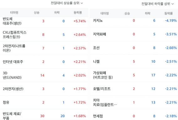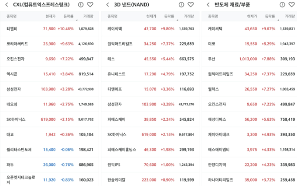 반도체, cxl, 2차전지, 인터넷, 낸드, 정유 등