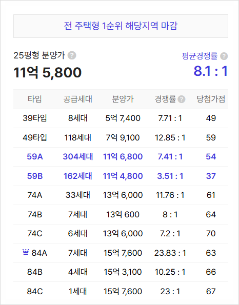 비례율은 {[총 수익 - 총 비용] ÷ 종전자산평가액}이므로 0.97이다. 용적률 300%가 적용되면 임대주택 비율이 매우 높은 수준이라도 그다지 사업성이 떨어지지 않는 것을 보여주는데, 이는 일반분양가를 매우 높게 잡았기 때문이다. 지방에선 아직까지 보기 드문 분양가인데, 이런 분양가가 서울이 아닌 광명에도 적용된 것이다. 만약, 조합원의 25평 감정평가액이 평당 1,890만원 수준이라면 4억 7,250만원이다. 비례율이 0.97이면 권리가액은 4억 5,832만원이다. 조합원 분양가가 평당 3,500만원이면 25평은 8억 7,500만원이다. 분담금은 4억 1,668만원이다. 약 절반의 가격을 내고 새 아파트로 들어갈 수 있다는 계산이 나온다.