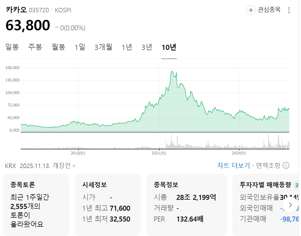 카카오의 문제는 단기간에 만들어진 것이 아니었습니다. 수년 동안 카카오는 사업 확장의 폭을 지나치게 넓게 가져갔고, 이 과정에서 조직은 복잡해지고 속도는 느려졌으며 핵심 수익원은 제대로 성장하지 못했습니다. 메신저 기반의 확장 전략은 매력적인 그림이었지만 실제로 카카오톡을 기반으로 한 비즈니스 모델이 충분히 고도화되지 못한 상태에서 사업 다각화를 계속 시도하다 보니 수익 구조는 약해지고 비용 구조만 커지는 현상이 발생했습니다. 카카오모빌리티·카카오엔터테인먼트·카카오게임즈 등 핵심 자회사들이 각자 잘하고 있는 듯 보였지만 그룹 차원의 시너지는 조금씩 약해졌습니다. 결국 시장은 카카오가 플랫폼 기업인지, 콘텐츠 기업인지, 투자 지주사인지 정체성을 명확히 구분하지 못한 상태로 몇 년을 흘려보냈고 이는 주가 부진의 가장 큰 요인으로 작용했습니다.