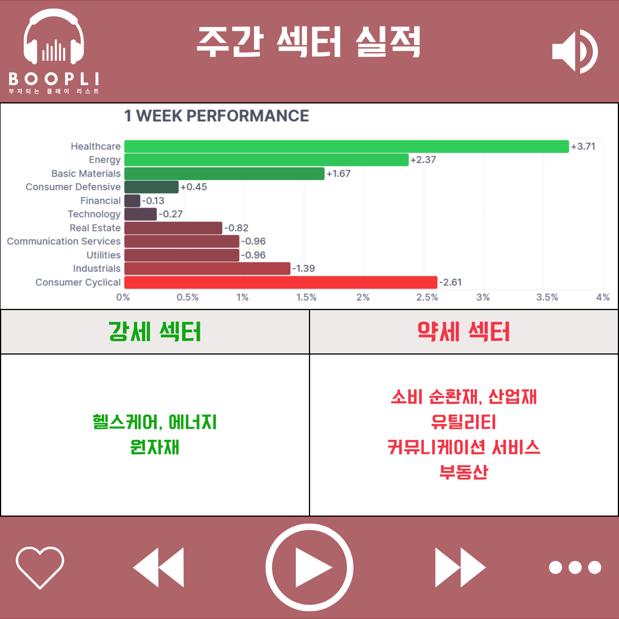 헬스케어 섹터가 상승을 주도했고, 이어서 에너지, 원자재 섹터가 강세를 보였다.