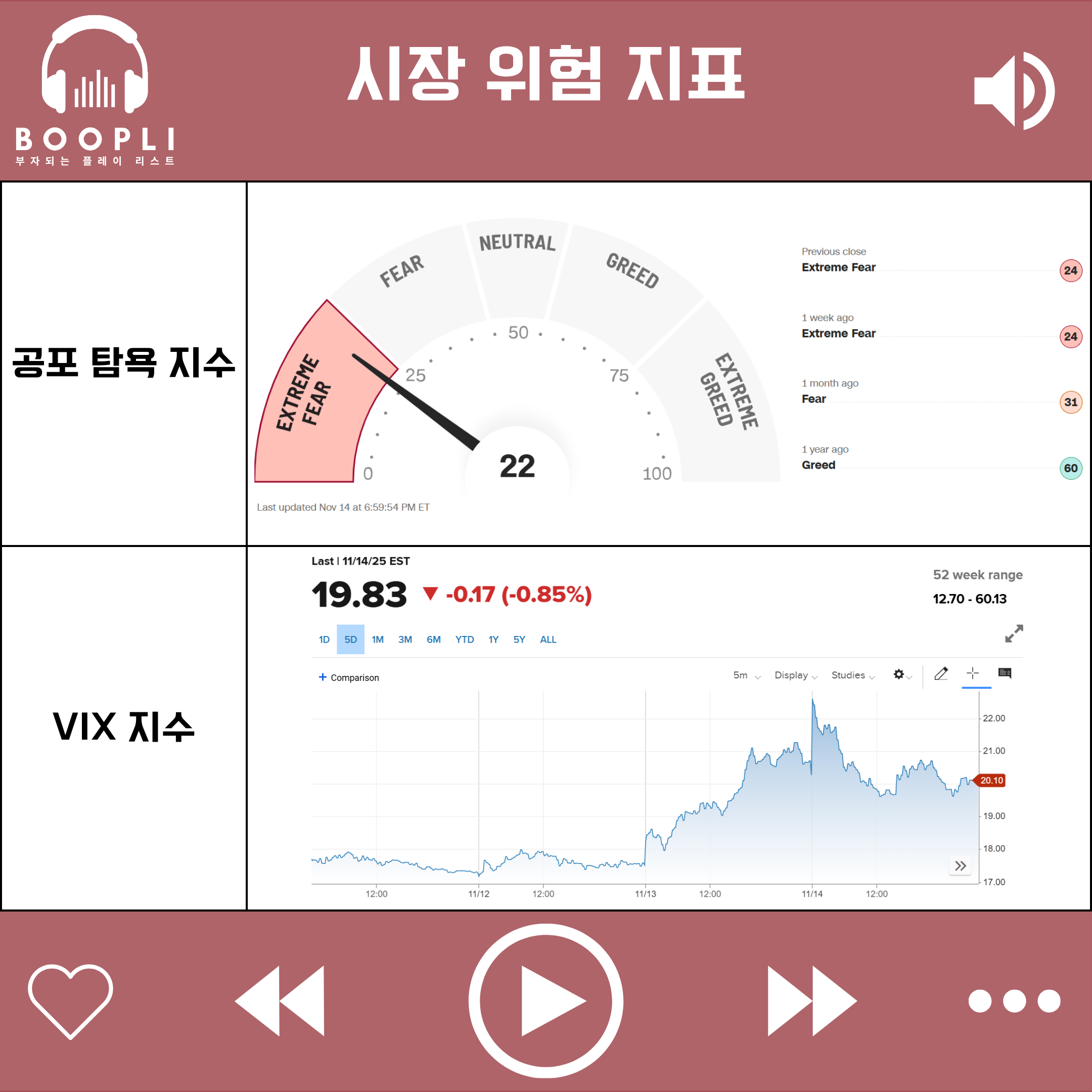 시장 변동성을 나타내는 VIX 지수는 1주일 전 대비 상승하며 변동성이 확대되었다.