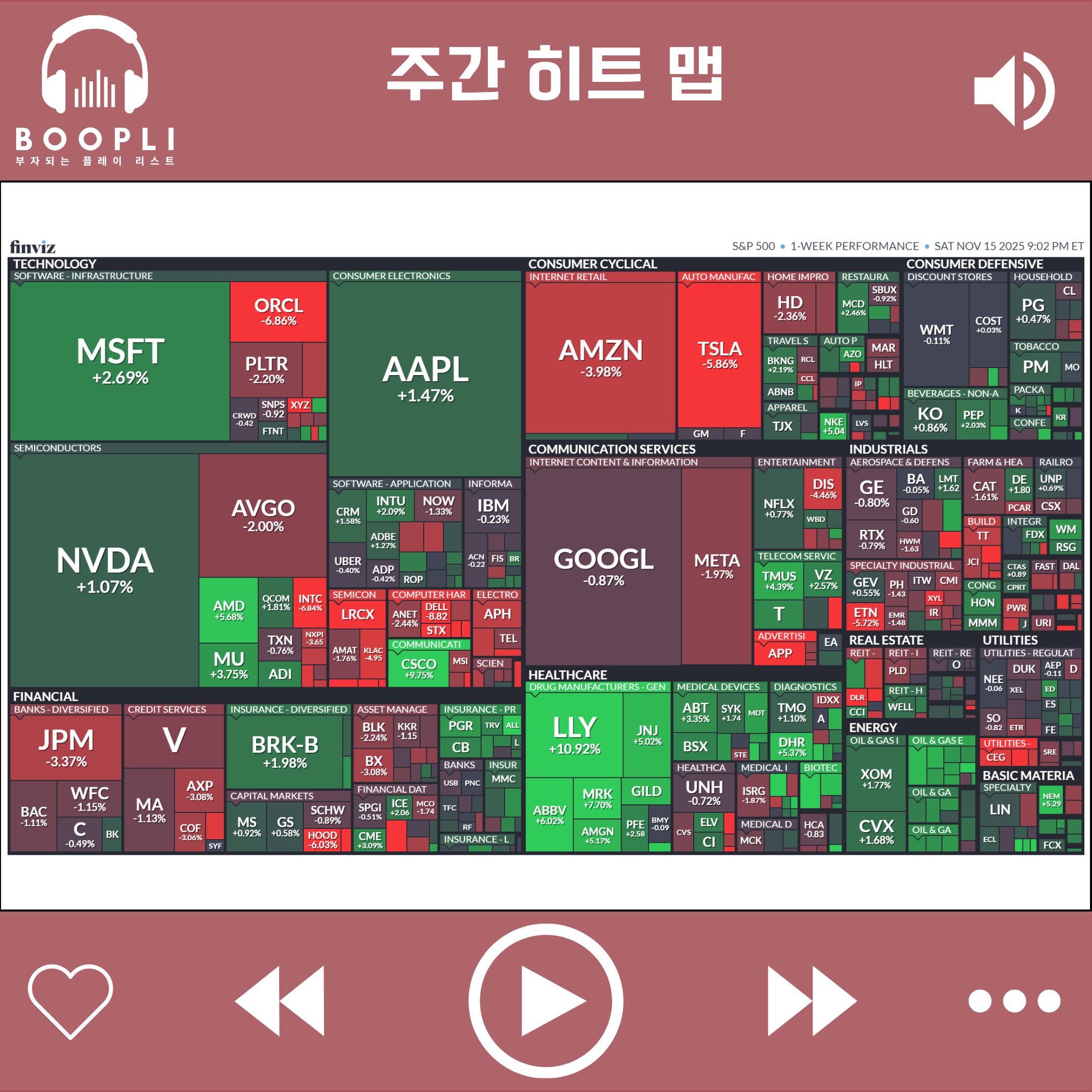 이번 주에는 연방정부 셧다운이 종료된 가운데 금리 인하 기대감 후퇴와 AI 고평가 논란 지속으로 섹터별 혼조세를 보였다.