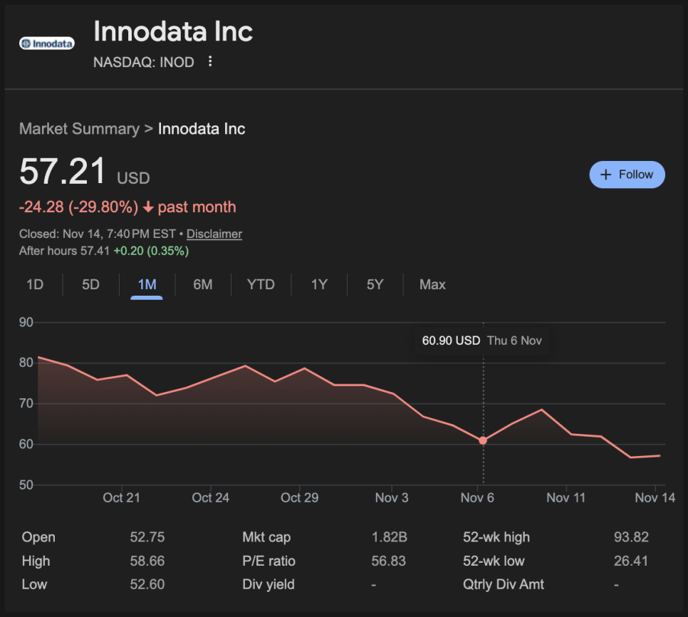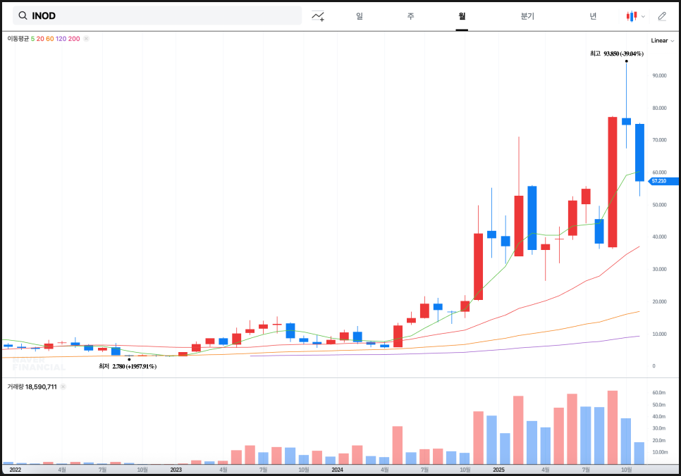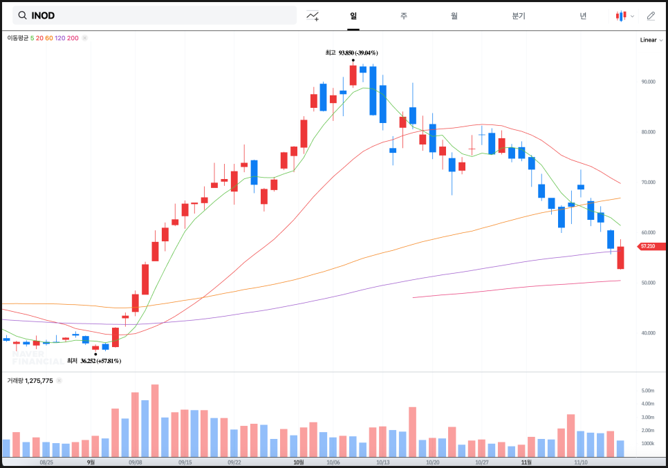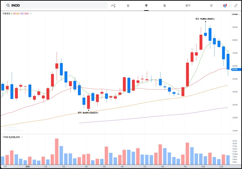 2025년 11월 16일에 다룰 종목은 이노데이터(INOD)입니다.