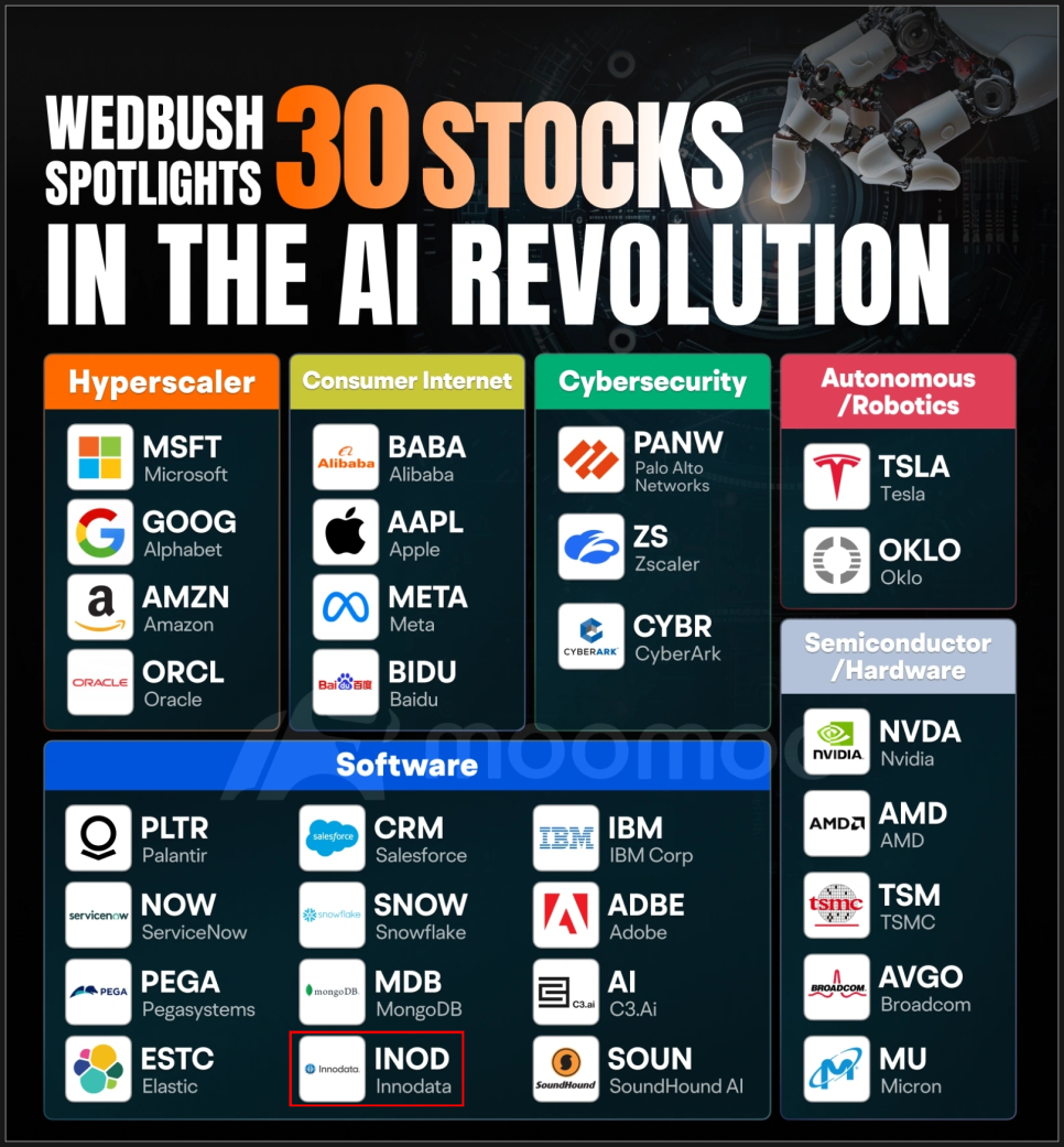 참고로 증권사 웨드부시 시큐리티즈(Wedbush Securities)는 최근 보고서에서 이노데이터를 ‘AI 혁신과 밀접하게 연결된 30개 기업’ 중 하나로 꼽았습니다. 엔비디아(Nvidia)나 팔란티어(Palantir) 같은 대형 기술기업들과 함께 언급된 것만 봐도, 이노데이터가 AI 생태계에서 핵심 인프라를 담당하는 회사로 인정받고 있음을 알 수 있습니다.