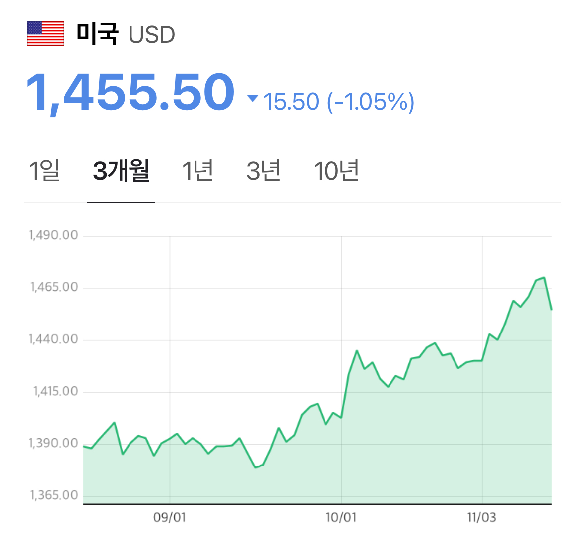 ์ต๊ทผ ์ยท๋ฌ๋ฌ ํ์จ์ด ํ๋ฃจ ๋ง์ 20์ ๊ฐ๊น์ด ๊ธ๋ฝํ๋ ์ด๋ก์ ์ธ ํ๋ฆ์ ๋ณด์์ต๋๋ค. 11์ 14์ผ ์ค์ ๊น์ง๋ง ํด๋ ํ์จ์ 1475์์ ์ก๋ฐํ๋ฉฐ ์ํ ์ฝ์ธ๊ฐ ์ฌํ๋๋ ๋ฏํ์ง๋ง, ์ธํ๋น๊ตญ์ ๊ฐ๋ ฅํ ๊ฐ์