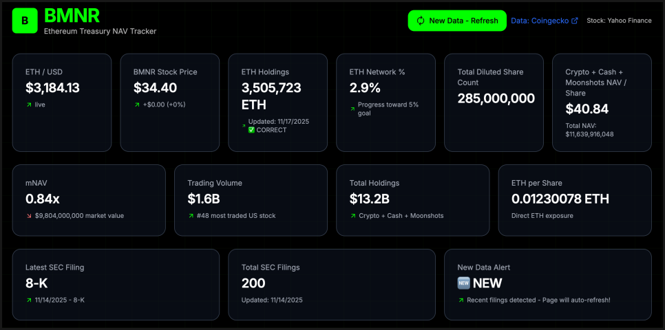하지만 시장의 반응은 냉정했습니다. 비트마인의 주식(BMNR)은 CEO 교체 발표 당일 약 4% 하락해 35달러 초반에서 거래됐고, 지난 한 달 동안 주가는 34% 가까이 떨어졌습니다. 이더리움 가격이 급락하면서 회사의 자산 가치가 직접적으로 줄어든 탓입니다.