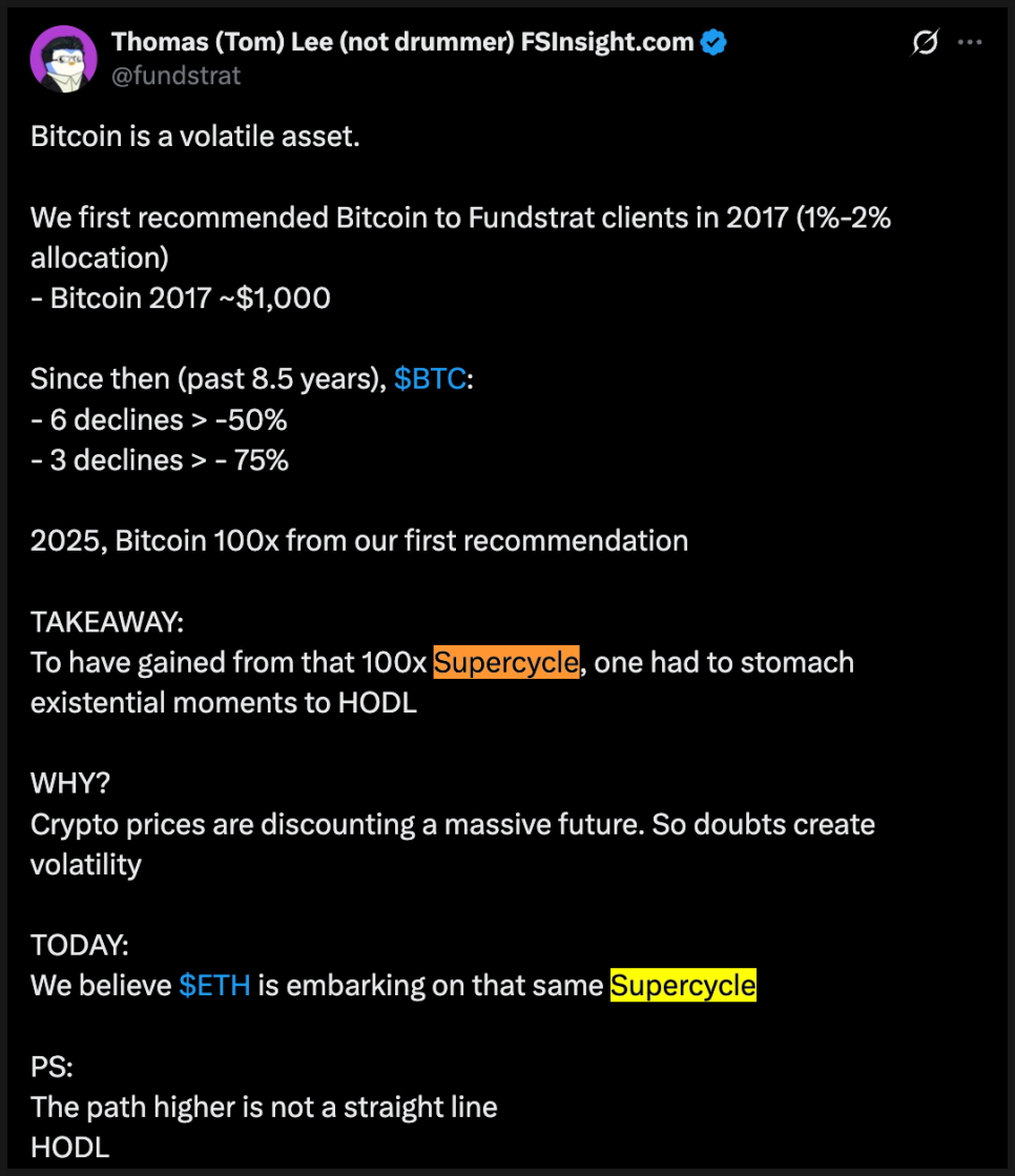 톰 리 회장의 ‘이더리움 슈퍼사이클’ 발언과 논란