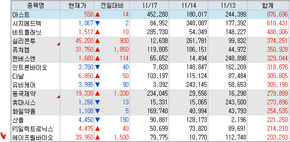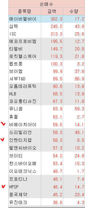 매도 : 삼일제약 한화 하림지주 보성파워텍 S-oil우 풀무원 기업은행 피에스케이홀딩스 한전KPS 리노공업 셀트리온 LIG넥스원 쎄트렉아이 풍산 BNK금융지주 iM금융지주 에코프로 실리콘투 에이비엘바이오(+174.0%) 플리토(+69.52%) SK스퀘어 에코프로머티
