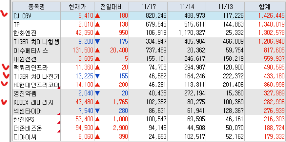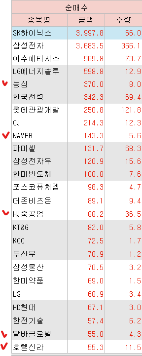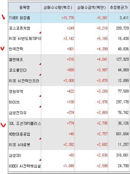 매수 : 맥쿼리인프라 Tiger미국30년국채커버드콜액티브 제이알글로벌리츠 골프존 코스모신소재 NAVER HJ중공업 달바글로벌 호텔신라 비에이치아이 HPSP Tiger차이나전기차 Tiger차이나휴머노이드로봇 금호타이어
