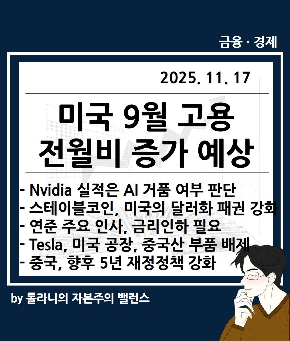 01. 미국 9월 고용, 전월비 증가 예상. Nvidia 실적은 AI 거품 여부 판단에 중요