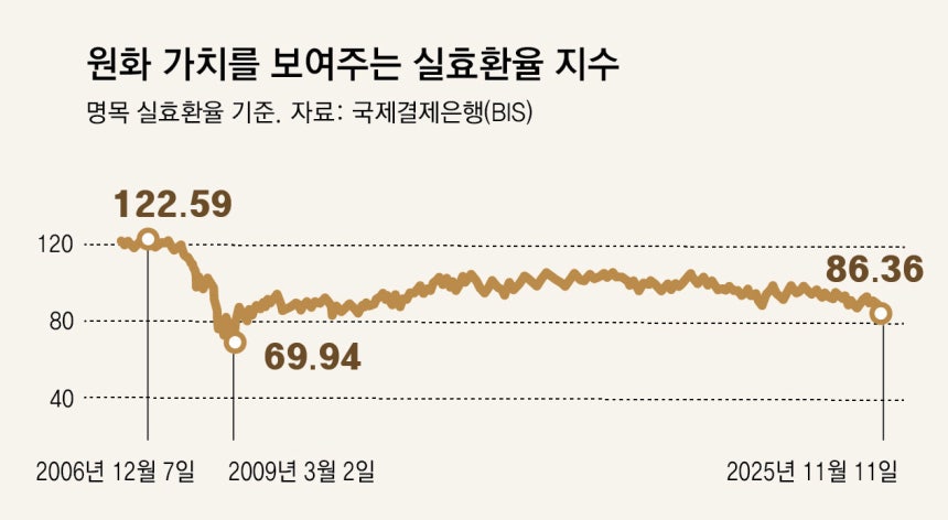 한국의 생산성과 자본수익률이 높아지지 않으면 장기 침체를 겪은 일본처럼 투자자들이 계속해서 원화를 달러로 바꿔 해외 투자 비중을 높일 것이라는 얘기